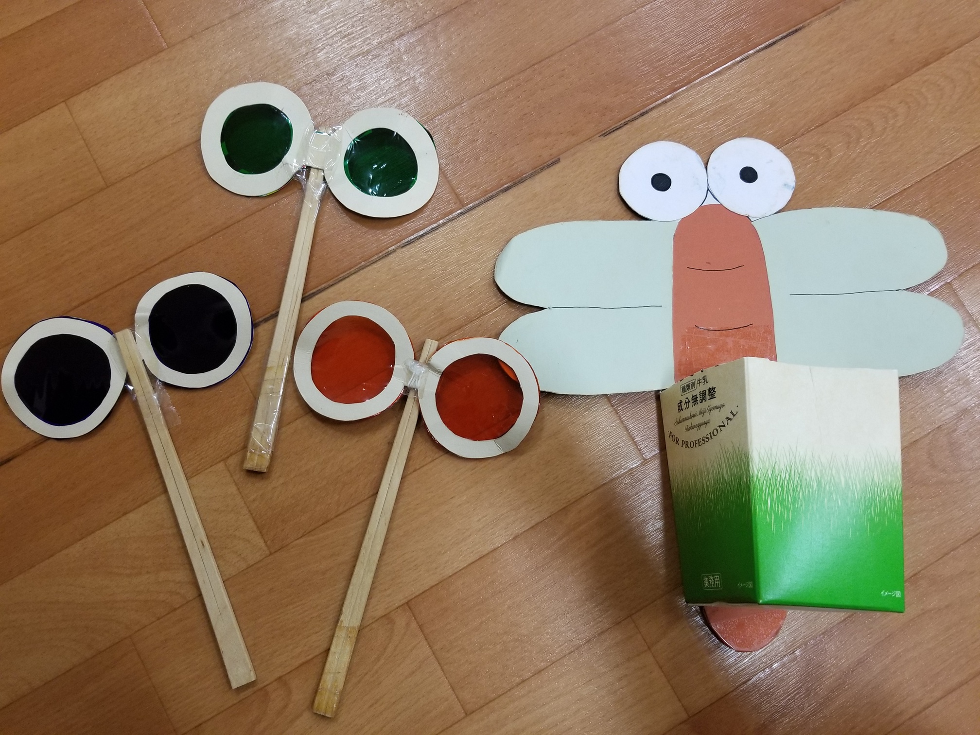 歌に合わせながら、自分の目にあててメガネを楽しんでいます。