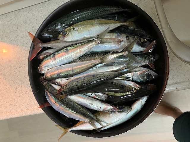 アジ、サバ、ウルメイワシ、オアカムロアジ。小物ですが釣れて楽しかったです。