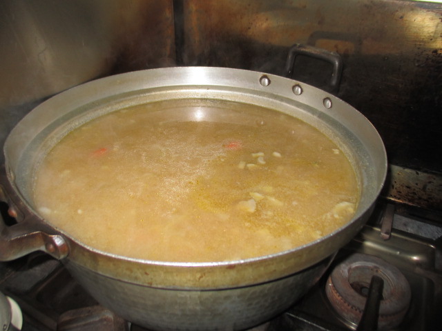 大鍋で野菜や豚肉をたくさん入れて煮込むので